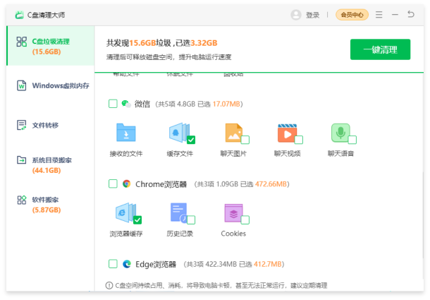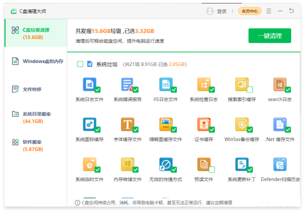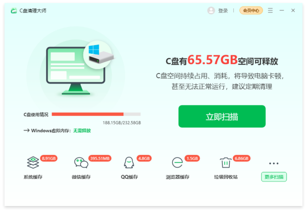 发表于 2025-11-02 10:25这软件主要清理的C盘的数据缓存 通常能清理出不少的空间 还是很推荐的!我的系统盘一下就不红了!!!!!!